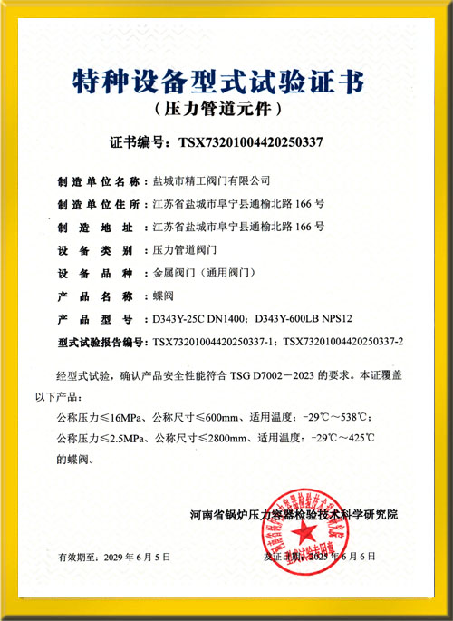 蝶閥試驗證書